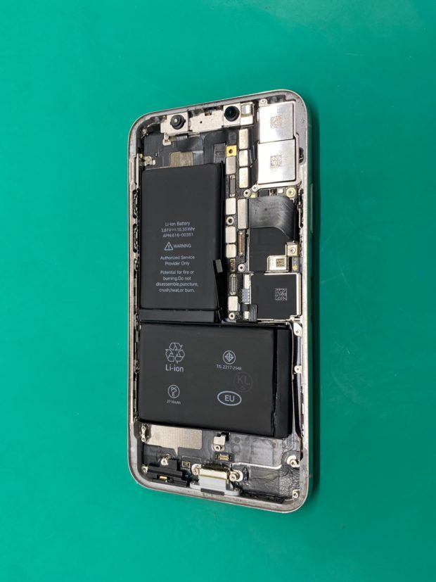 iPhoneXのバッテリー交換作業 松本市からiPhoneXのバッテリー交換でご来店頂きました。 バッテリーの最大容量がなんと12%とという事で、これではあっという間に充電が終わってしまう状態でした。 画面割れもしておりましたが、お客様が交換しないという事でしたのでバッテリー交換のみ修理対応させて頂きました。 中身を空…